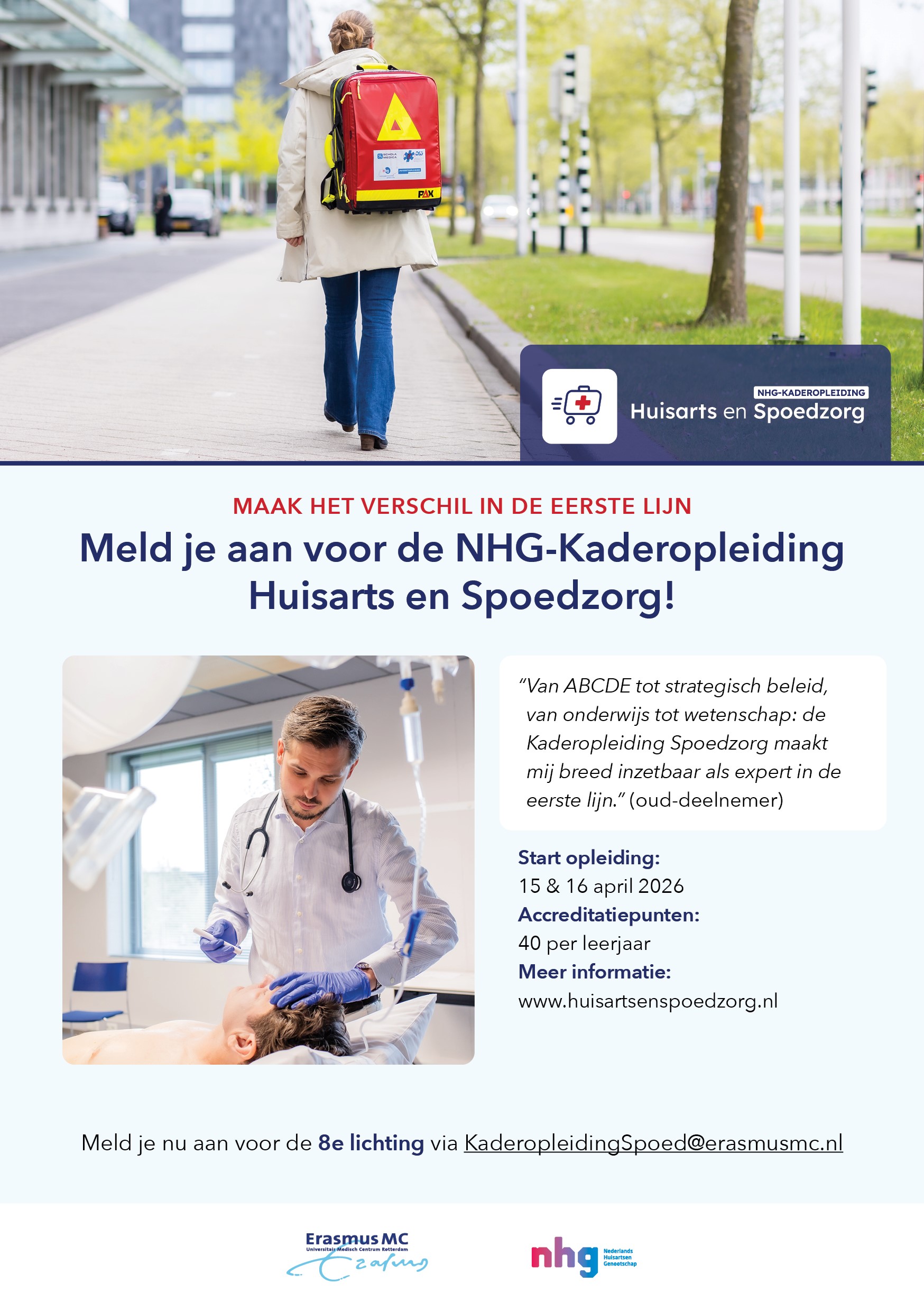 - Ga voor meer informatie over de NHG-Kaderopleiding Huisarts en Spoedzorg naar www.huisartsenspoedzorg.nl.